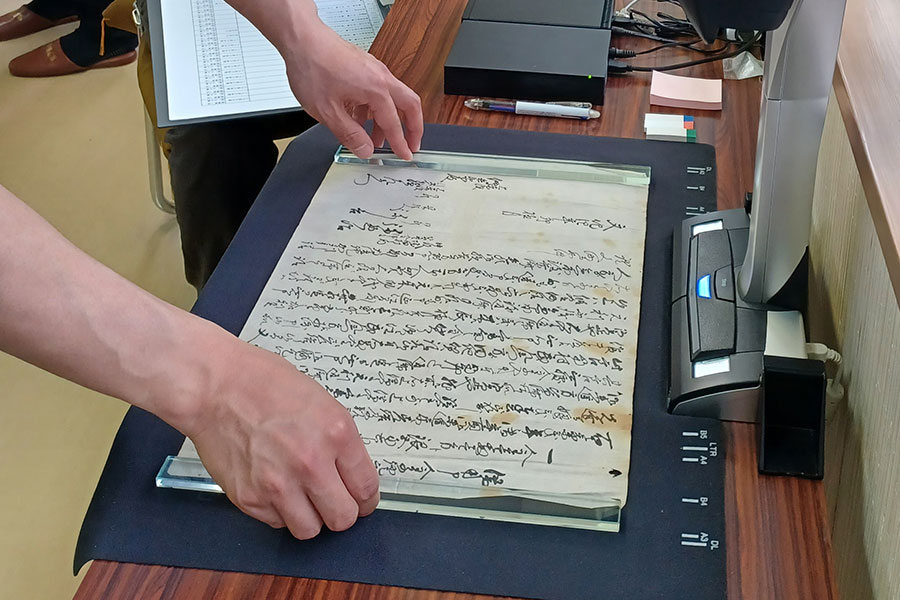 デジタル研究会というのを作って、現在は作業日を月に1回設けています。具体的には、スキャナーで古文書をスキャンして、専用ソフトで確認して、ファイルに保存します。こういうと簡単そうですが、実際は古文書が冊子だったり巻物だったりと、形状もバラバラで、紙の厚さも違うので大変です。1冊をスキャンするのに数時間かかることもあります。今は15、6人ほどメンバーがいますが、最初は素人ばかりだったので、古文書のことは高遠町歴史博物館学芸員の福澤浩之さん、デジタル機器のことは長野県南信工科短期大学校教授の松原洋一先生にお声がけをして、来ていただくことになりました。